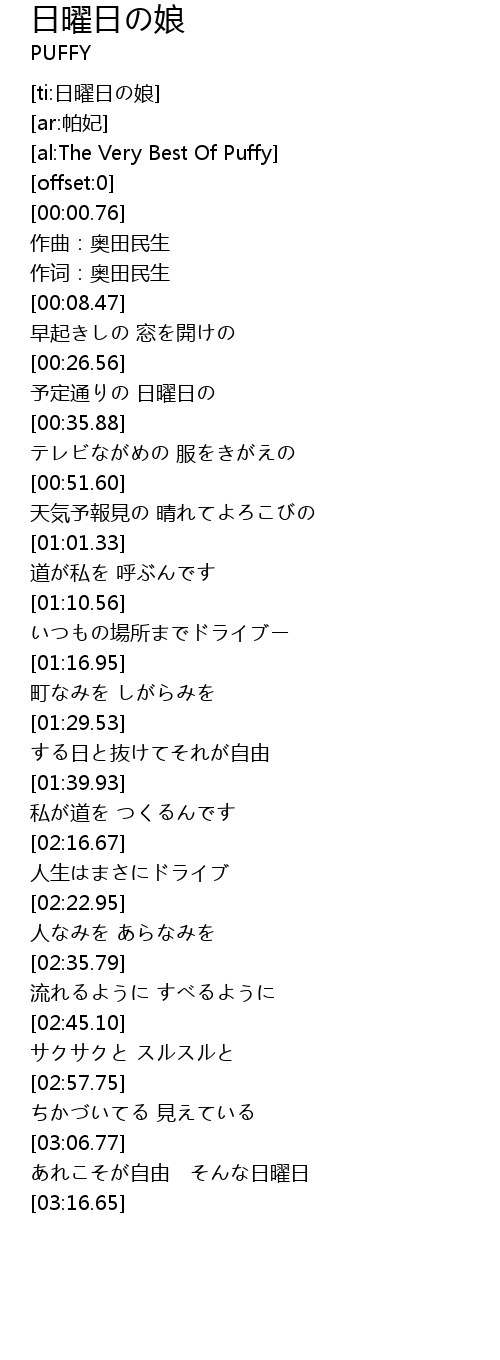 | [03:07.67] | あれこそが自由 そんな日曜日 |