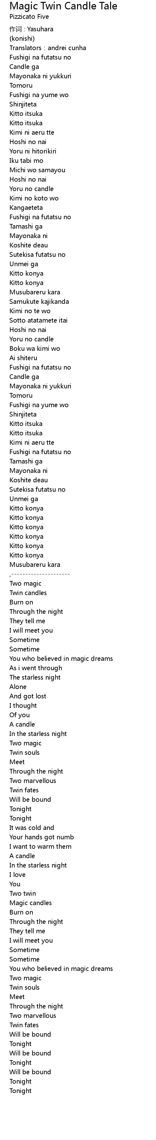 | Song | Magic Twin Candle Tale |
