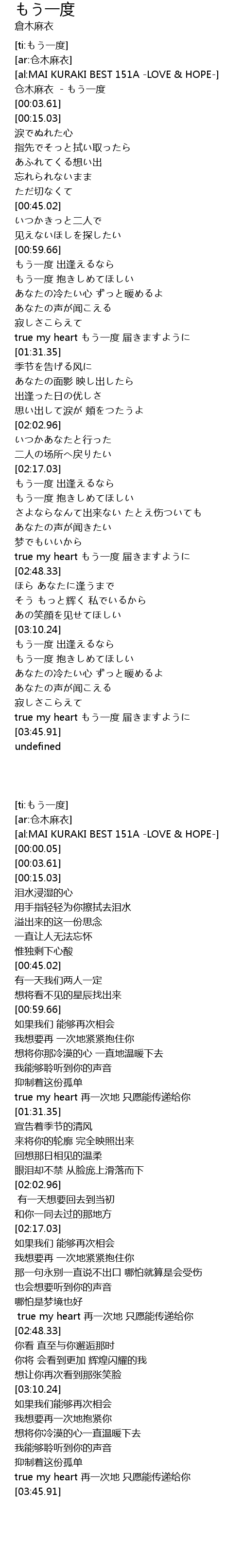 | [00:00.05] | 仓木麻衣 - もう一度 |
