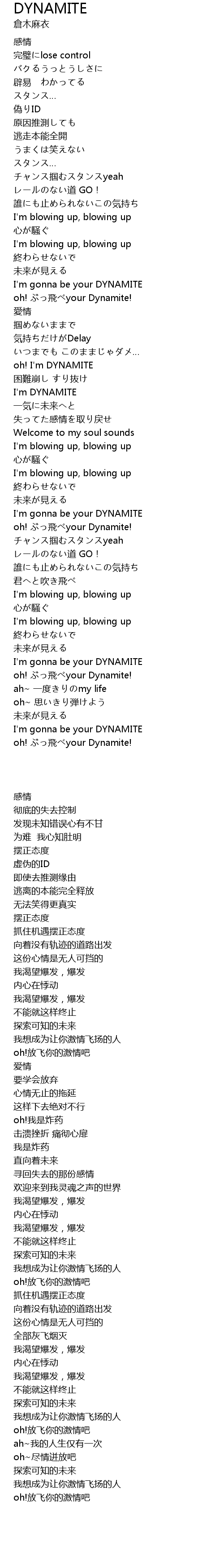| [01:52.234] | oh! ぶっ飛べyour Dynamite! |