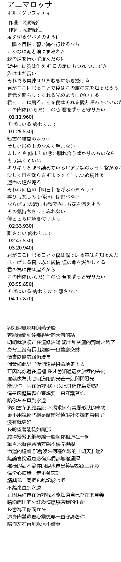 | [03:47.750] | この肉体(からだ) この心 君をずっと守りたい |