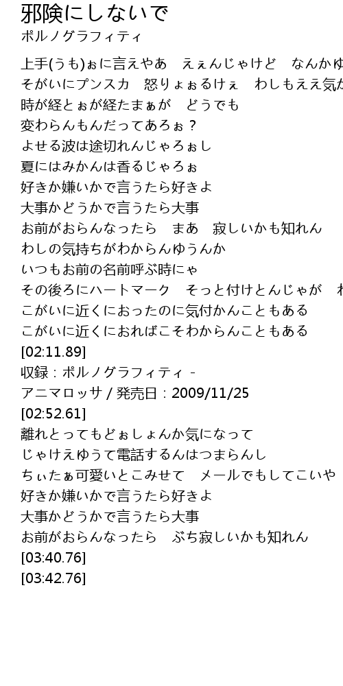 | [03:15.89] | 好きか嫌いかで言うたら好きよ |