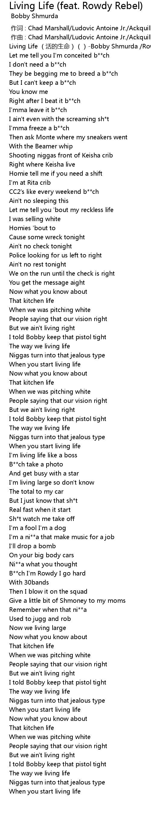| [00:00.00] | Living Life huó de shēng mìng Bobby Shmurda Rowdy Rebel |