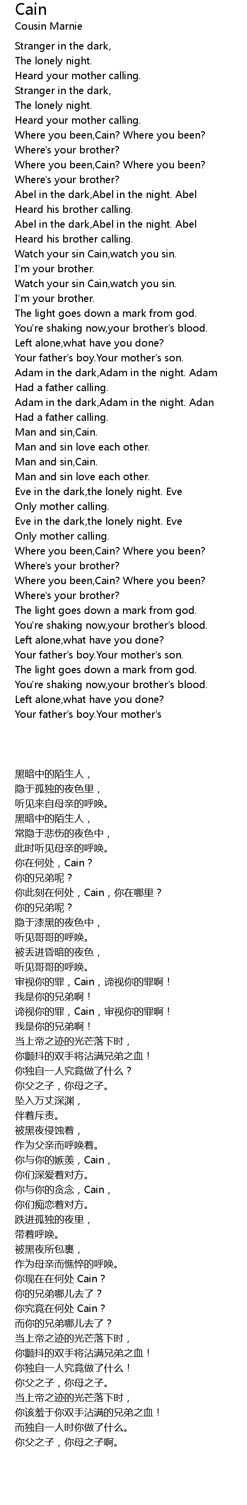 [00:37.350] Abel in the dark,Abel in the night. Abel