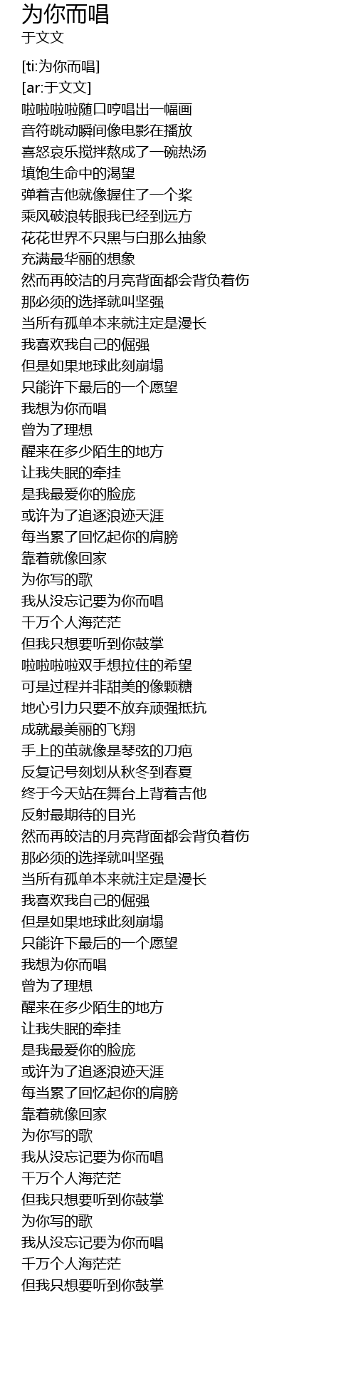 | [01:18.894] | wǒ xiǎng wèi nǐ ér chàng |