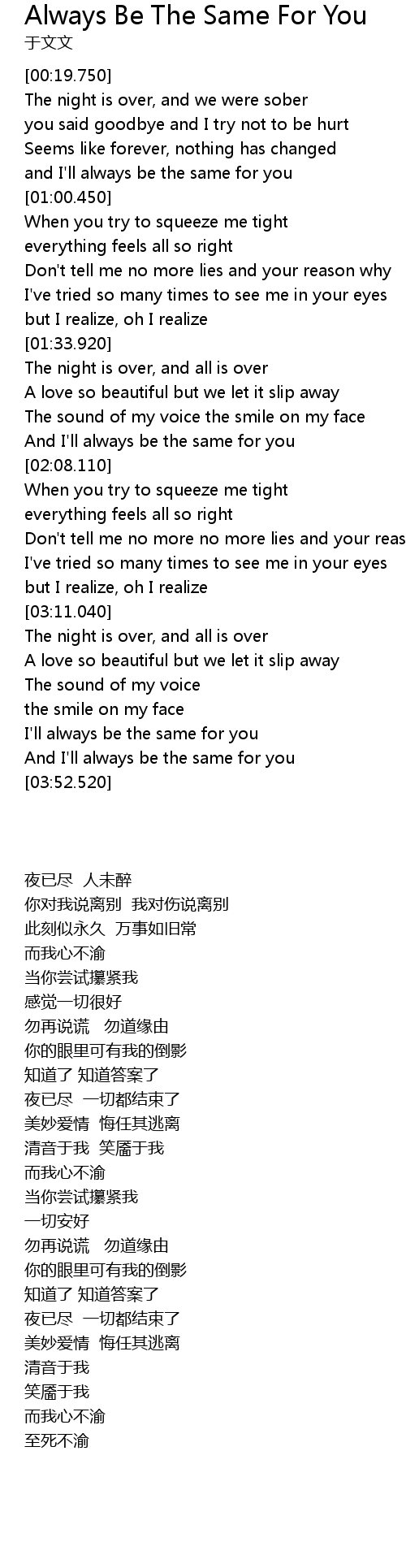 | [00:55.500] | and I'll always be the same for you |