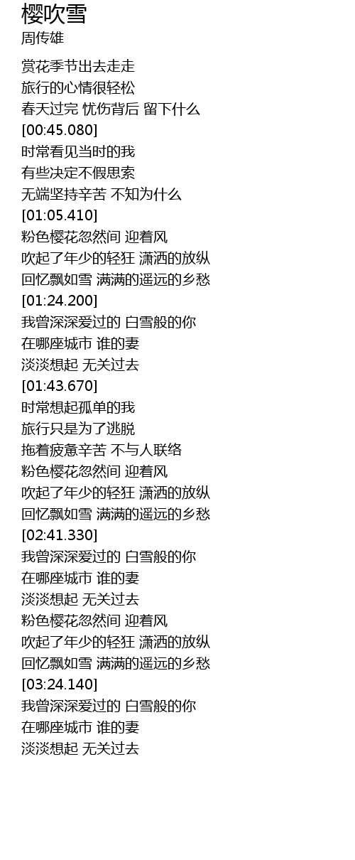 | [03:05.790] | 粉色樱花忽然间 迎着风 |