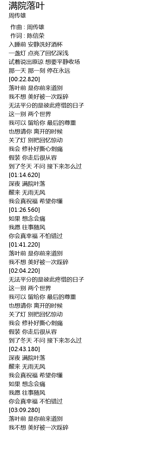 | [03:22.520] | 落叶前 是你前来道别 |
