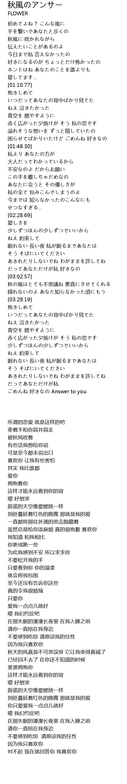 | [03:09.54] | 秋の風はとても不思議ね 素直にさせてくれる |