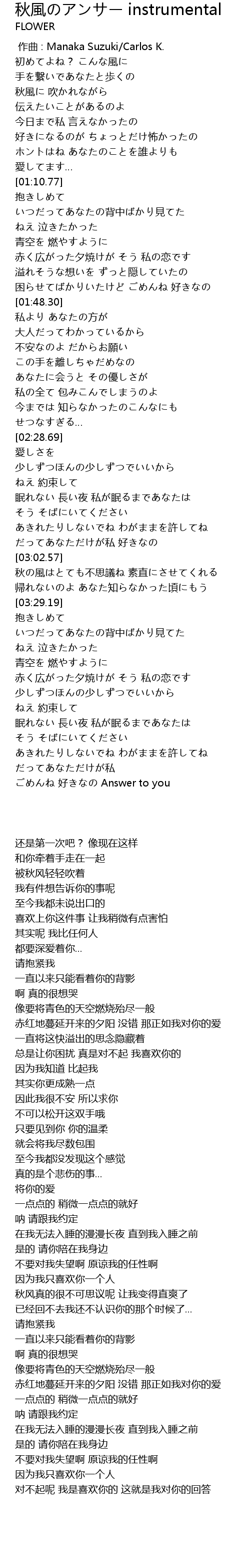 | [00:00.000] | zuo qu : Manaka Suzuki Carlos K. |