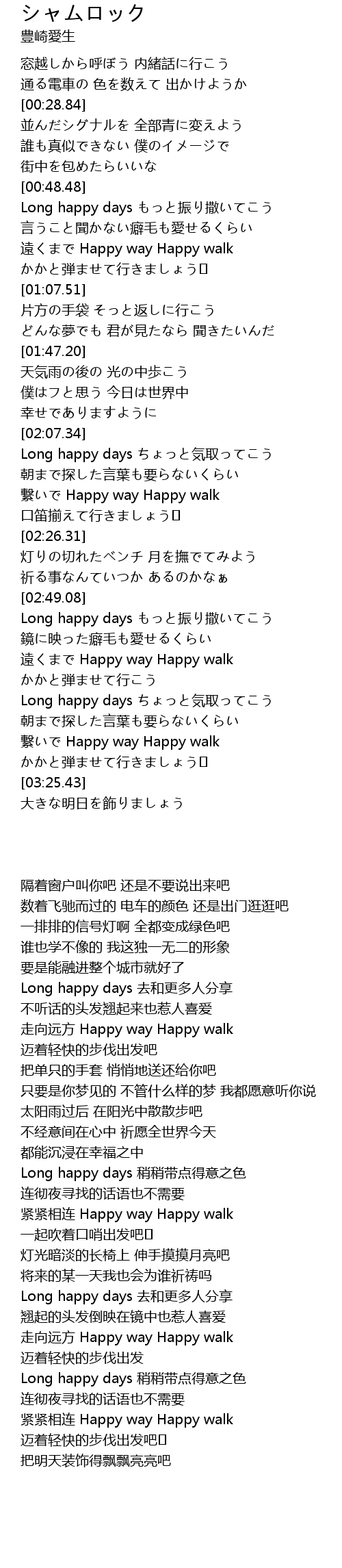 | [03:00.50] | 遠くまで Happy way Happy walk |