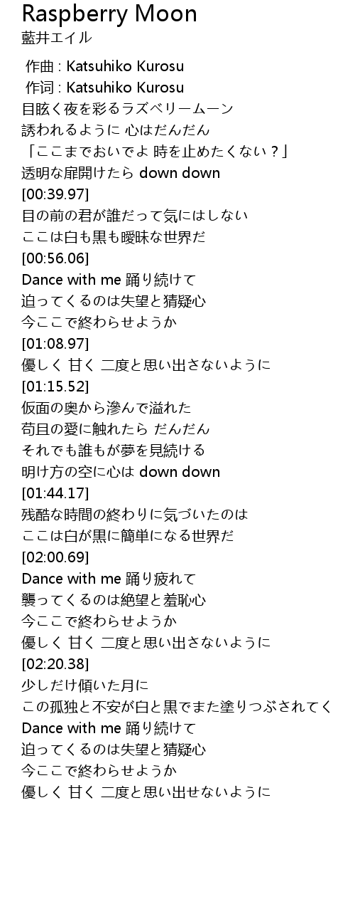 | [00:19.62] | 目眩く夜を彩るラズベリームーン |