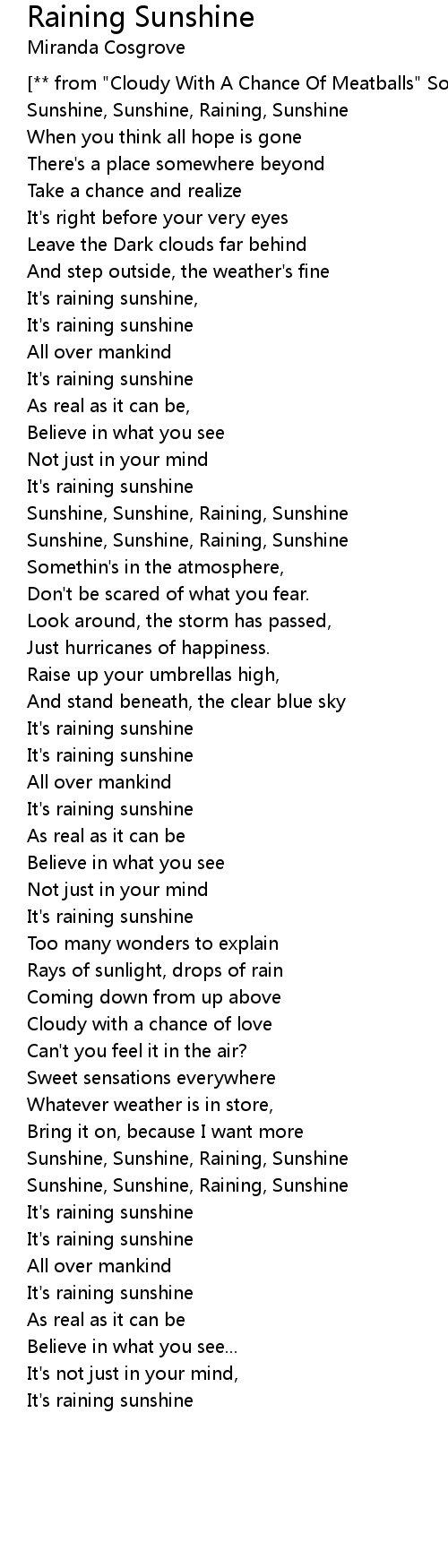 [** from "Cloudy With A Chance Of Meatballs" Soundtrack:] |