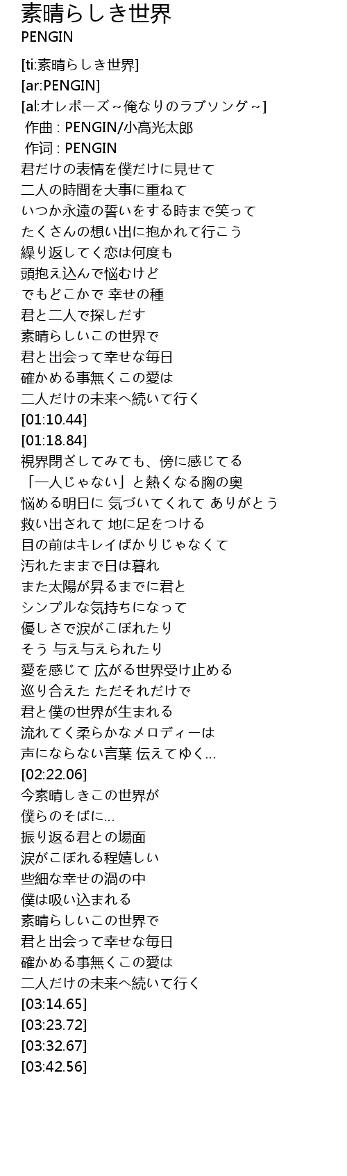 | [00:00.00] | 作曲 : PENGIN/小高光太郎 |