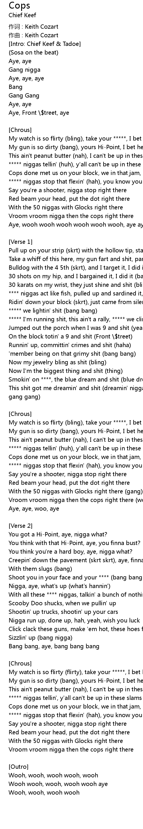 | Vroom vroom nigga then the cops right there (woo woo) | |