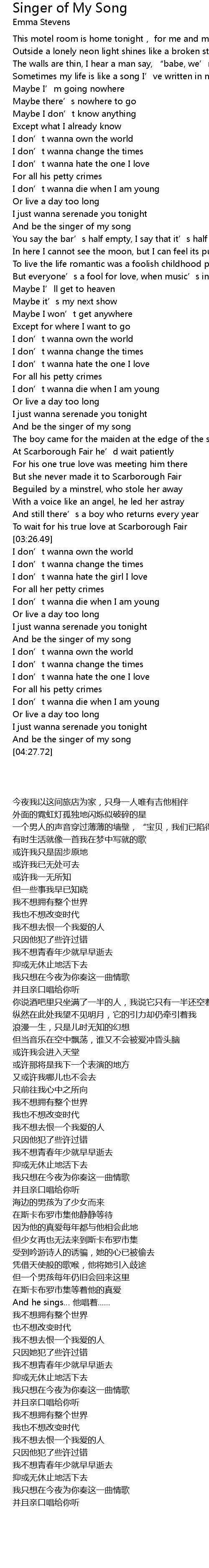 | [03:21.32] | To wait for his true love at Scarborough Fair |