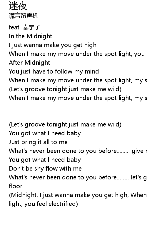 | Midnight, I just wanna make you get high, When I make my move under the spot light, you feel electrified |