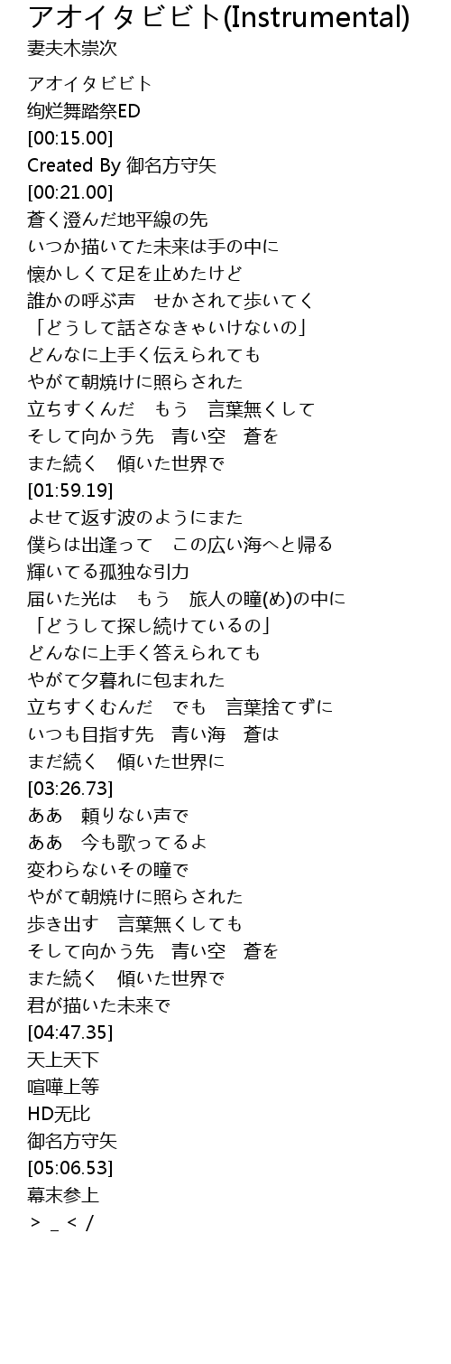 | [00:37.02] | 蒼く澄んだ地平線の先 |