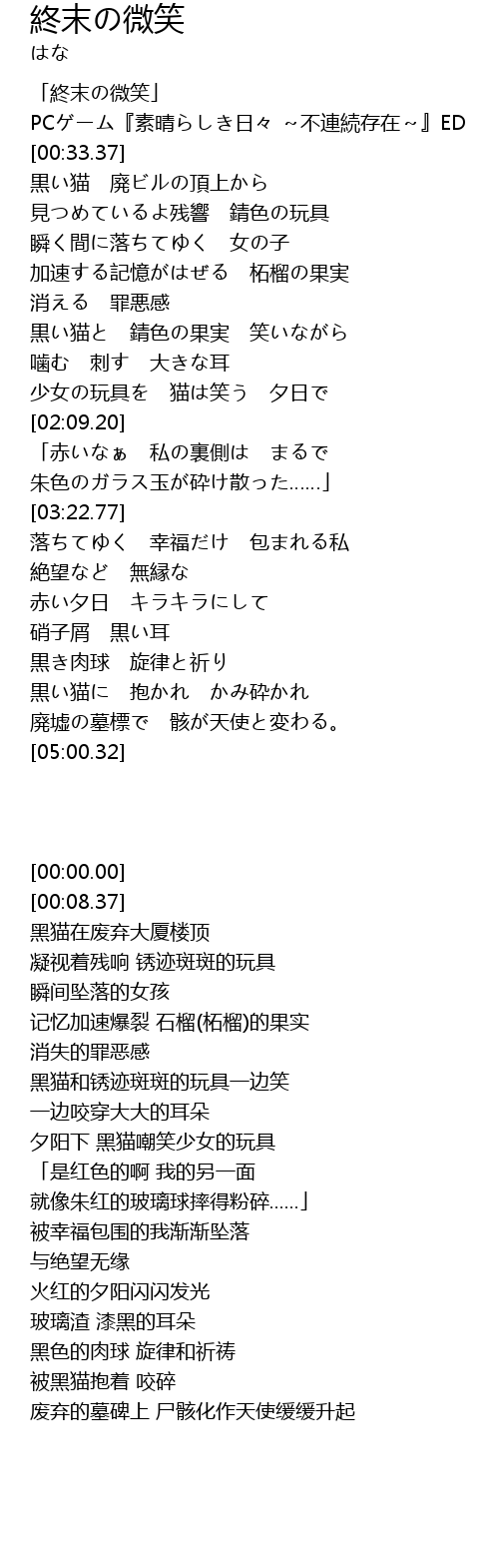 | [00:08.37] | PCゲーム『素晴らしき日々 ~不連続存在~』ED |