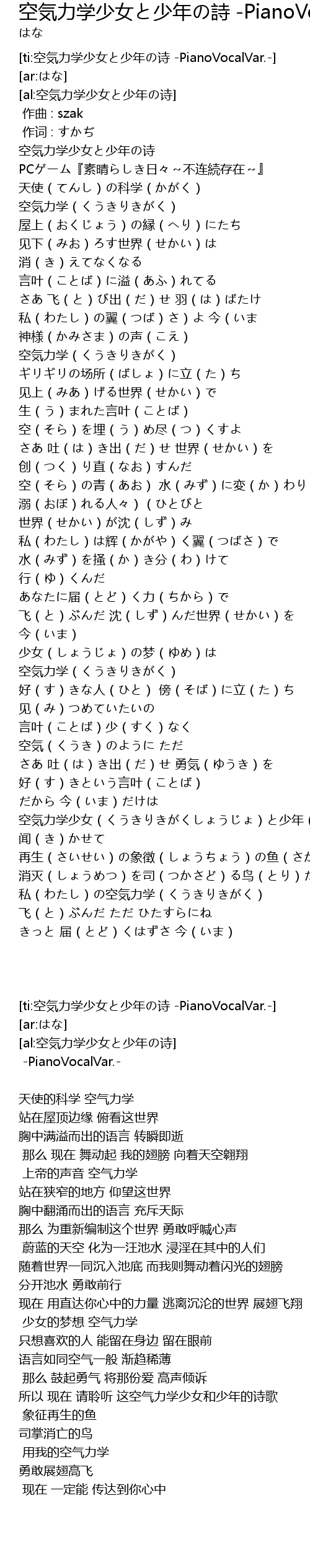 | [ti:空気力学少女と少年の诗 -PianoVocalVar.-] | |