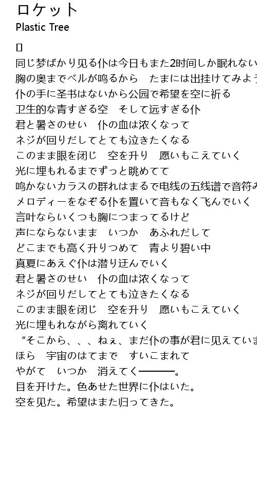 | このまま眼を闭じ 空を升り 愿いもこえていく | |