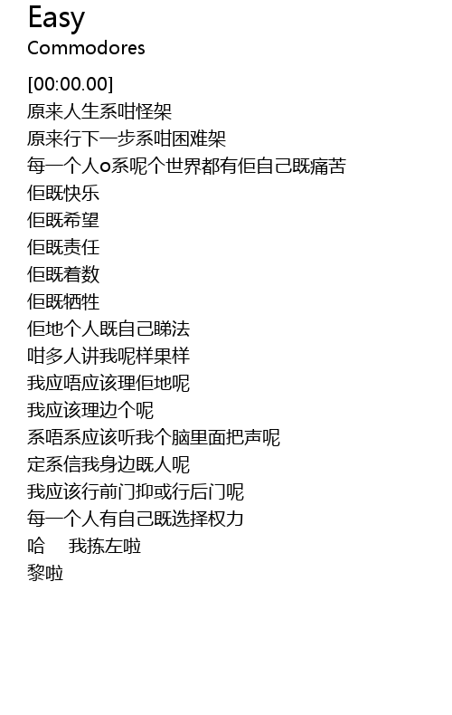 | [00:23.63] | 每一个人o系呢个世界都有佢自己既痛苦 |