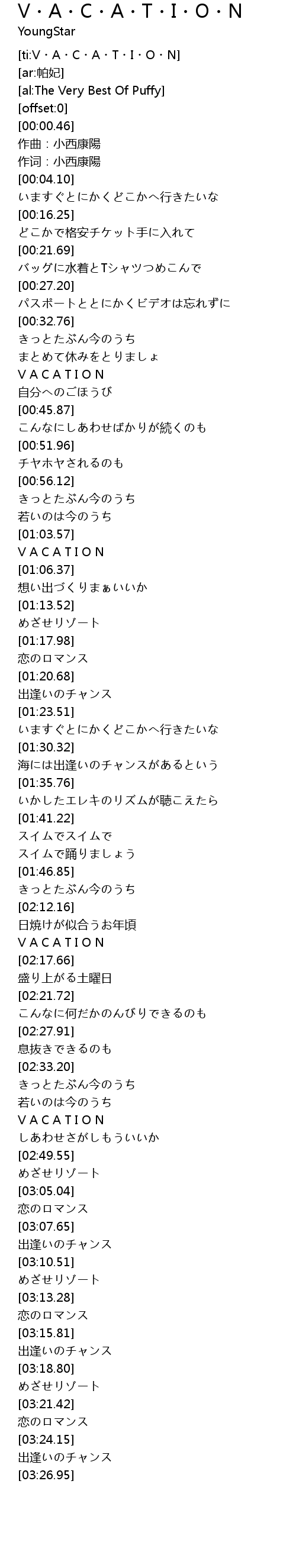 | [00:23.02] | バッグに水着とTシャツつめこんで |
