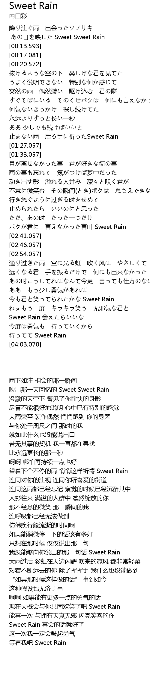 | [03:34.791] | 今も君と笑ってられたかな Sweet Rain |