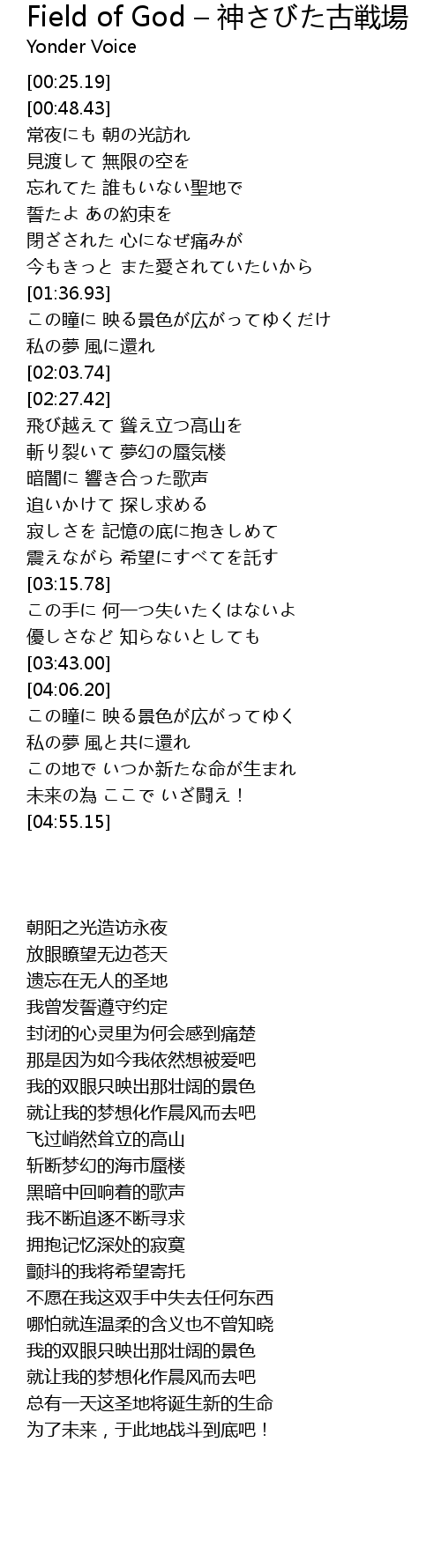 | Song | Field of God – 神さびた古戦場 ~ Suwa Foughten Field |