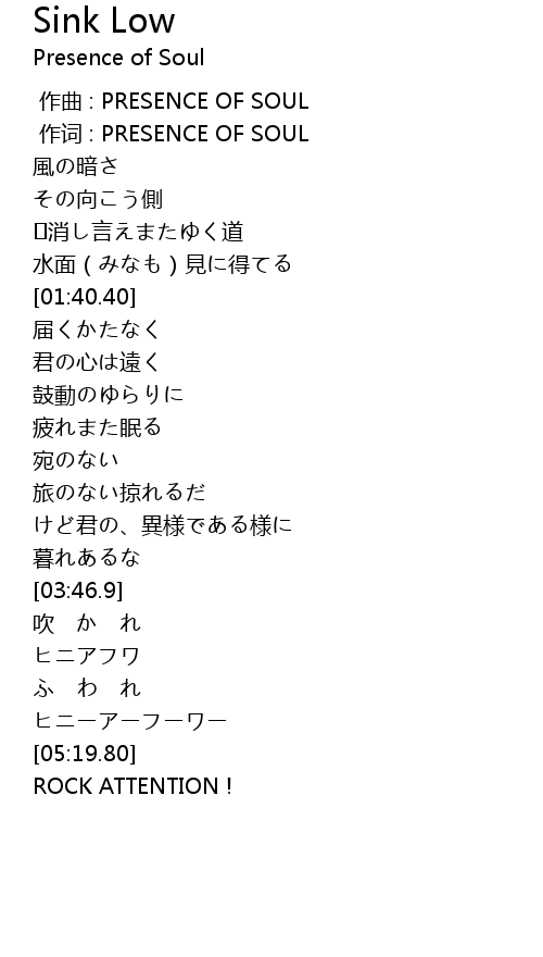 | [00:01.000] | zuò cí : PRESENCE OF SOUL |