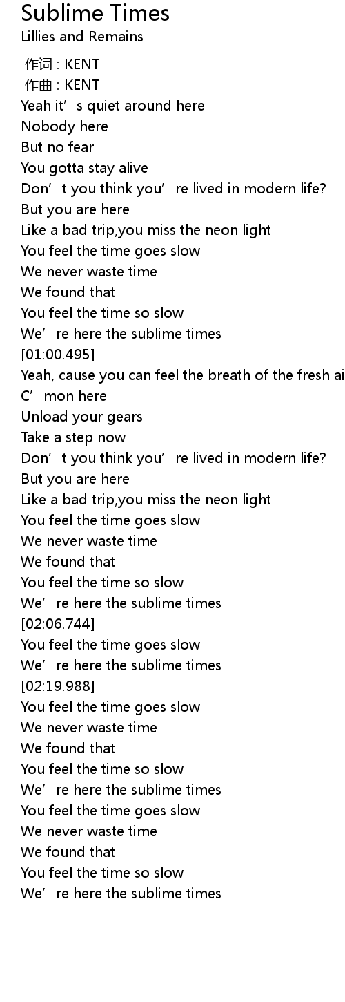 | [00:53.928] | We' re here the sublime times |