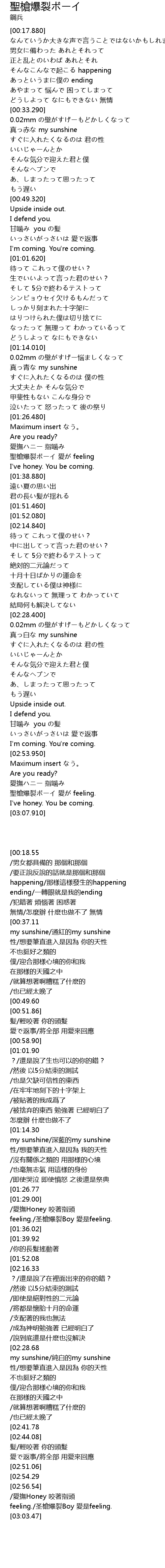 | [01:33.030] | 聖槍爆裂ボーイ 愛が feeling |