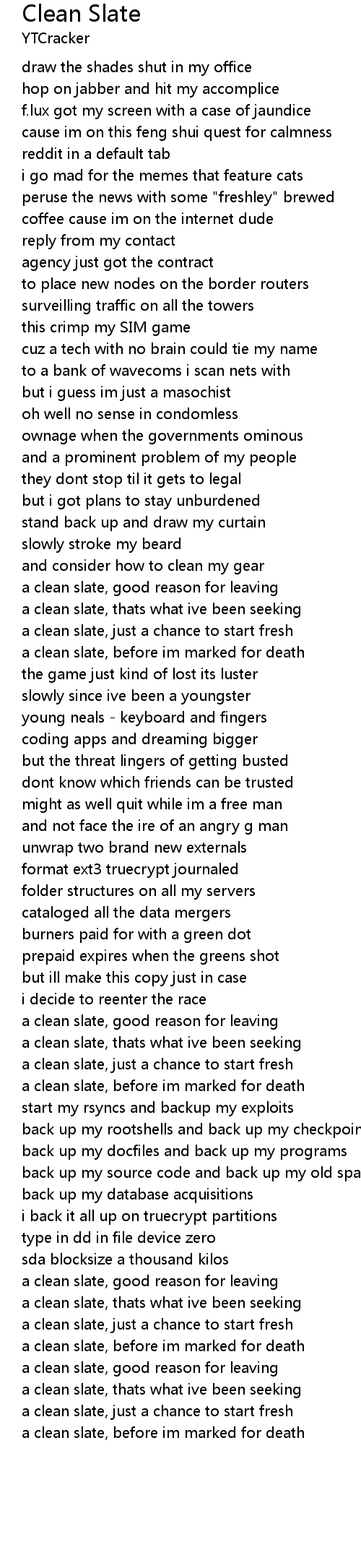 a clean slate, thats what ive been seeking |