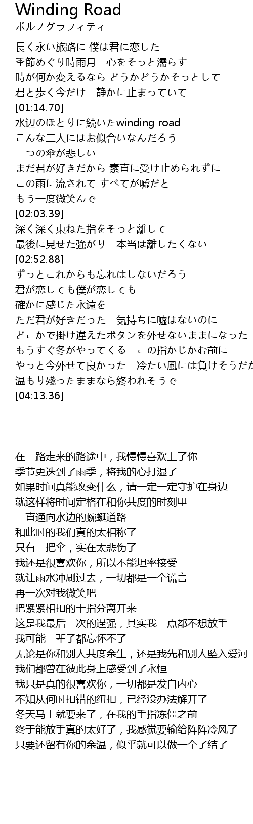 | [01:16.56] | 水辺のほとりに続いたwinding road |