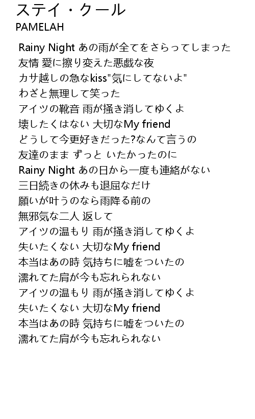 | [00:34.070] | カサ越しの急なkiss"気にしてないよ" |