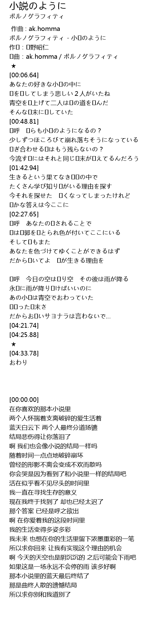 | [00:04.64] | �曲:ak.homma/ポルノグラフィティ |