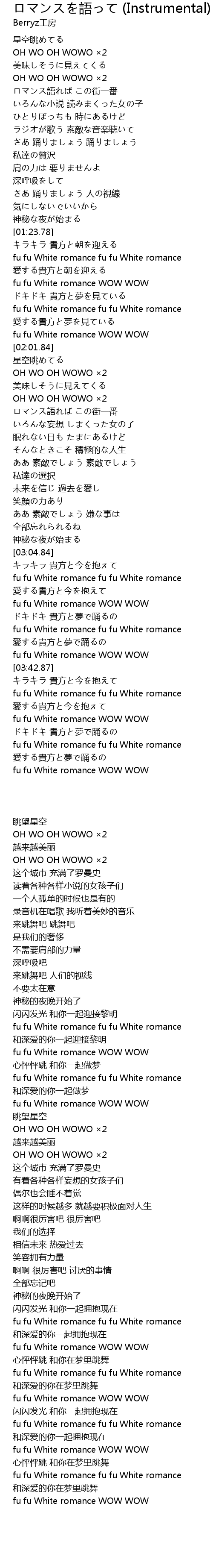 | [03:19.11] | fu fu White romance WOW WOW |