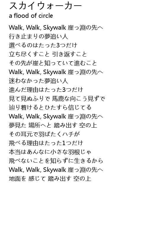 | 夢見た 場所へと 踏み出す 空の上 | |