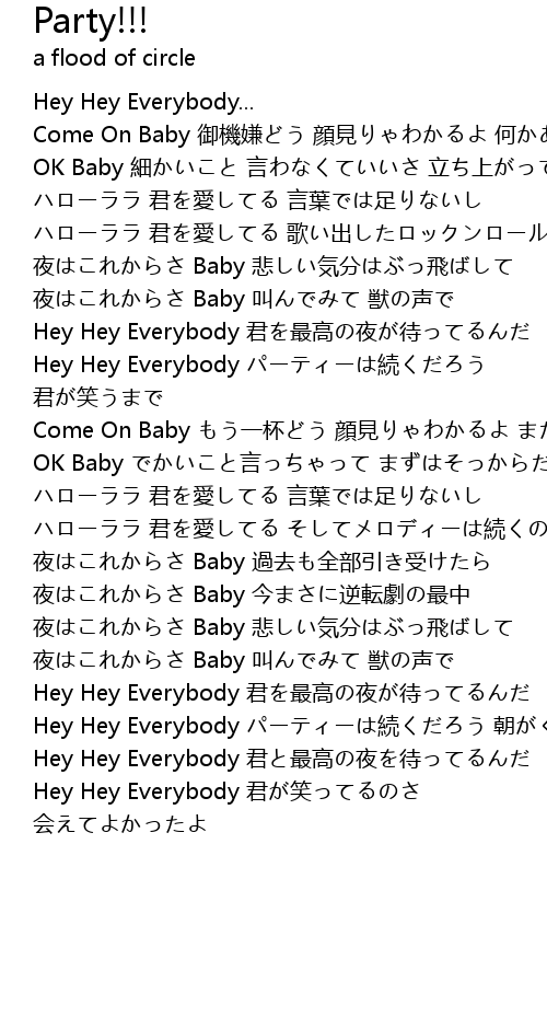| Hey Hey Everybody パーティーは続くだろう 朝がくるまで | |
