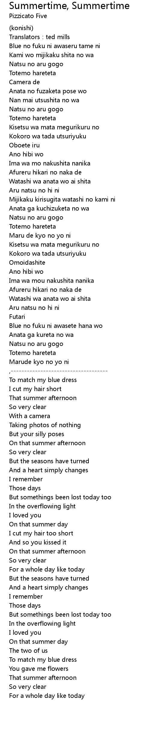 | Song | Summertime, Summertime |