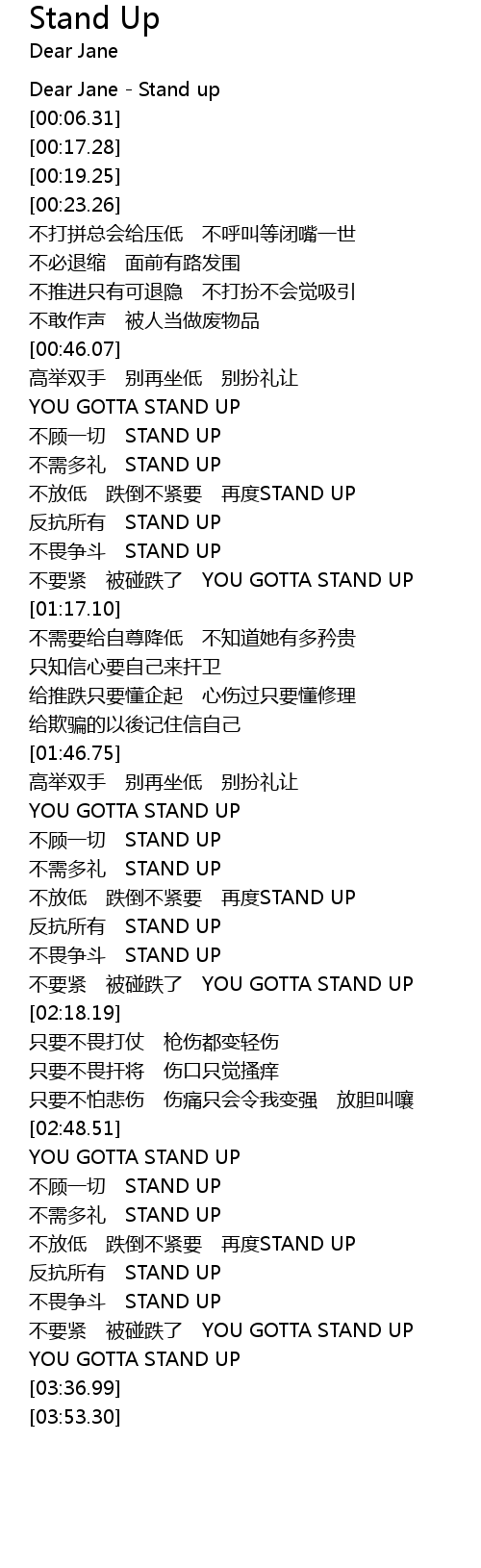 | [03:32.71] | YOU GOTTA STAND UP |