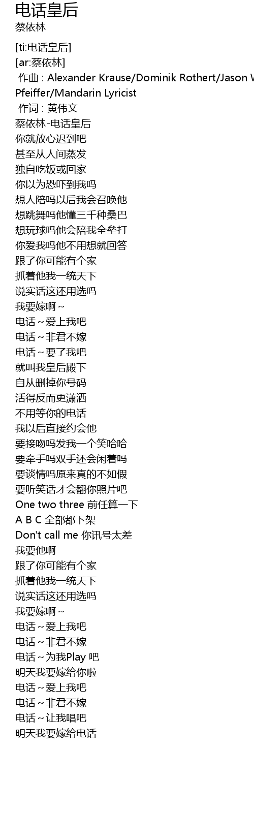 | [ti:电话皇后] | |