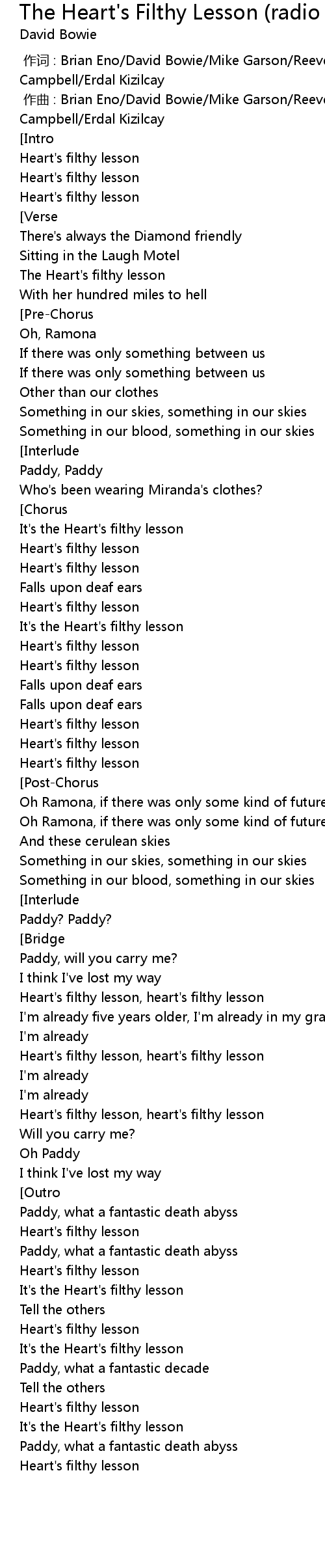 | [02:45.916] | Heart' s filthy lesson, heart' s filthy lesson |