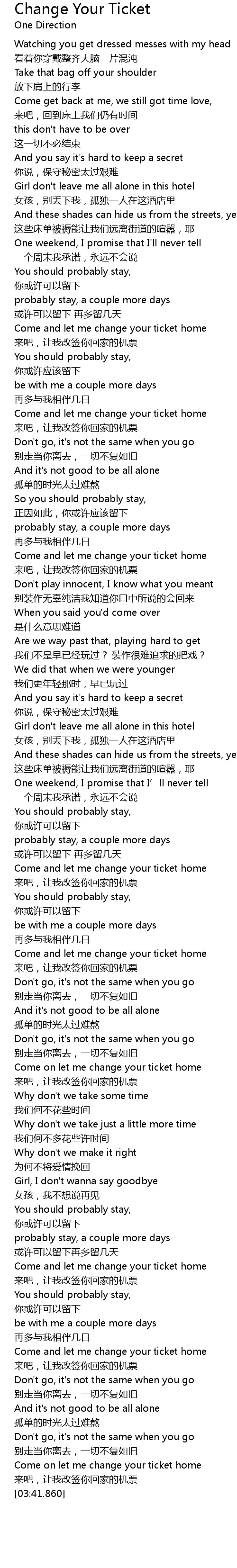 | [03:11.510] | Come and let me change your ticket home |