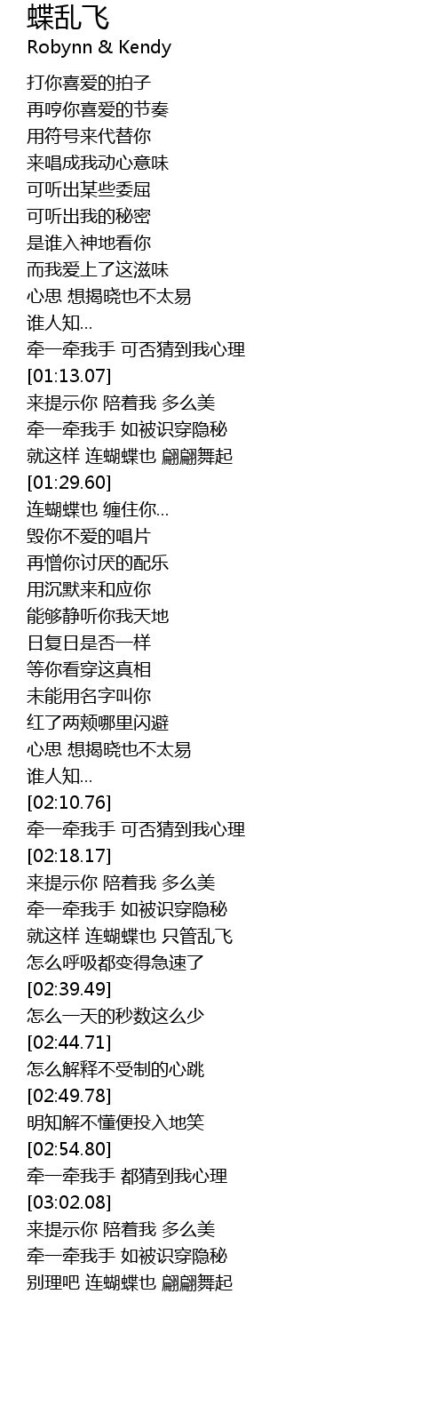 | [01:35.19] | 连蝴蝶也 缠住你... |