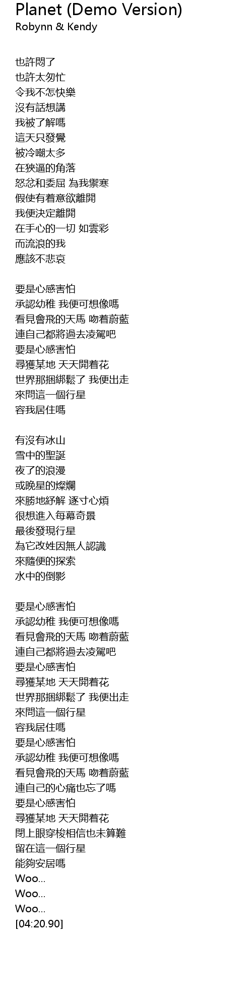 | [03:55.17] | 留在這一個行星 |