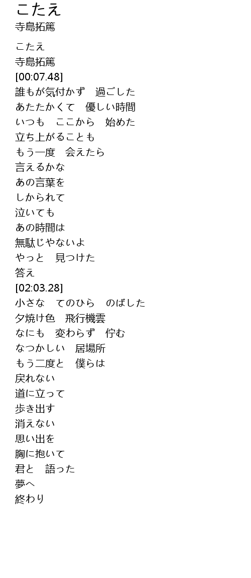 | [02:42.94] | 夕焼け色 飛行機雲 |