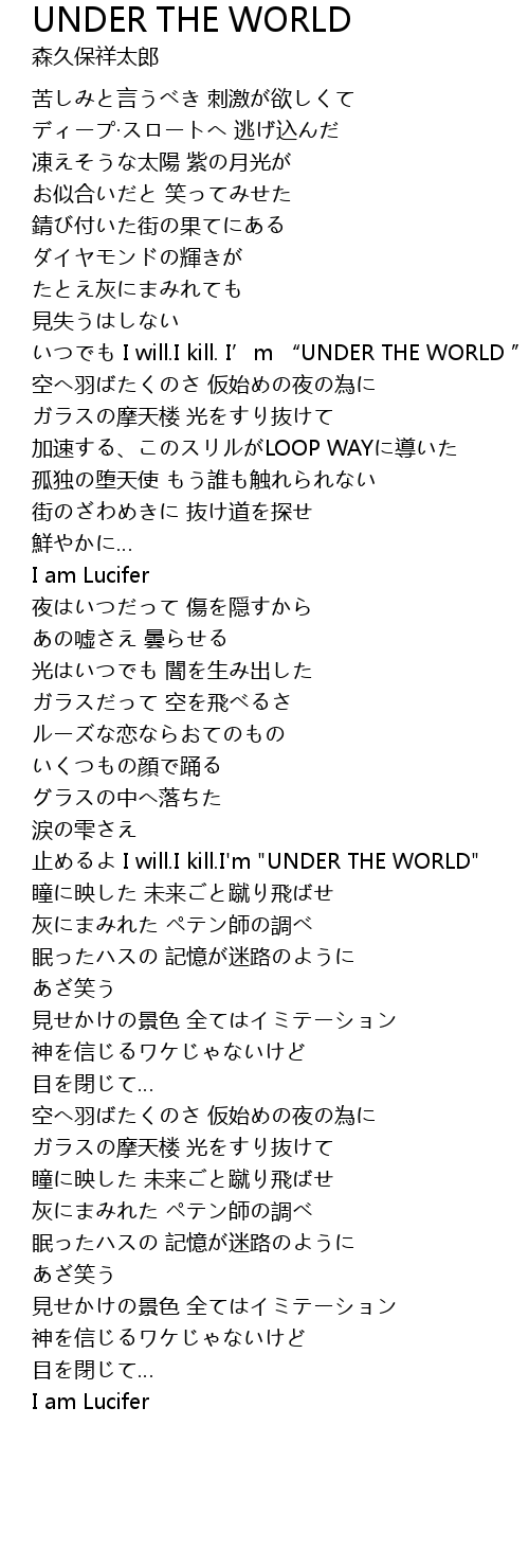 | [02:39] | 止めるよ I will.I kill.I'm "UNDER THE WORLD" |