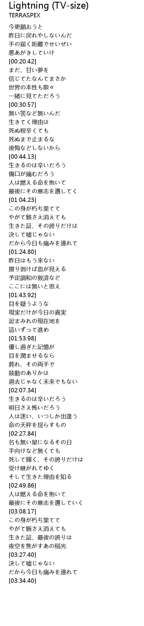 Lightning (TV-size) Lyrics