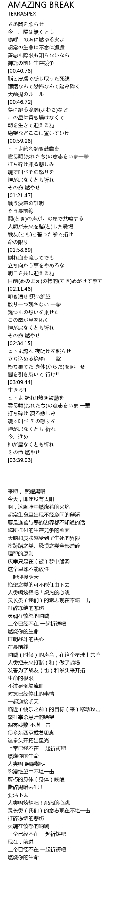 | [03:10.33] | ヒトよ 誇れ!!熱き鼓動を |
